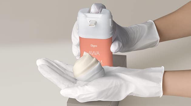 POINT 01 クリームと泡のいいとこ取り! 手でぬれて、濃密に染まる。